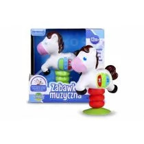 W trakcie kołysania konik wydaje wesołe dźwięki, śmiech dziecka, oraz odgłosy galopu, rżenia i parskania. Pod każdym z 2 przycisków maluch odkryje wesołe melodie, a podczas ich odgrywania w figurka konika rozświetli się. Zabawka wyposażona jest w przyssawkę, umożliwiającą umocowanie do blatu. Użyj tej praktycznej przyssawki i przymocuj muzycznego konika do podłoża. Dzięki temu nie przewróci się, kiedy maluch zacznie nią kołysać. Konik doskonale nadaje się do zabawy na stole lub dziecięcym krzesełku czy podłodze. Zabawka, dzięki bogatej kolorystyce, przyciągnie uwagę Twojej pociechy, pomoże w rozwoju jej zdolności motorycznych, chwytania, zmysłów, a także umożliwi zrozumienie zasady-przyczyna skutek. Funkcje zabawki: o 2 interaktywne przyciski, o ponad 10 różnorodnych melodii i odgłosów, o odgłosy galopu, rżenia i parskania, o zabawka wyposażona jest w przyssawkę, która zapobiega przesuwaniu zabawki na płaskiej powierzchni, o zabawka obraca się na przyssawce wokół własnej osi.