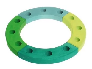 Zielono turkusowy Pierścień Urodzinowy marki Grimm's to zestaw 4 klocków z otworami kompatybilnymi z dekoracyjnymi figurkami i świeczkami Grimm's. Można ułożyć z niego kolorowy wieniec urodzinowy jako ozdobę na stół. Zestaw składa się z: 4 elementów z drewna lipowego, z 3 otworami każdy; elementy wykończono nietoksyczną bejcą na bazie wody. (Inne widoczne na zdjęciach zabawki nie są elementem zestawu, można dokupić je oddzielnie.) Zabawka: