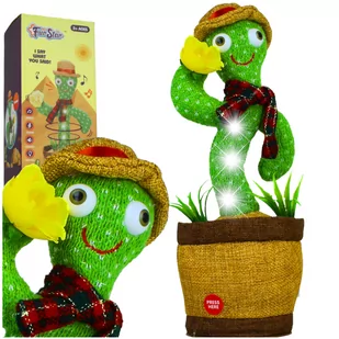 FunStar, interaktywna maskotka, kaktus, U902 Specyfikacja produktu: Duża liczna wgranych piosenek (około 120 utworów) Przeznaczenie: dzieci/dorośli Funkcja odtwarzania / powtarzania Poprawia humor Nauka mówienia Efekty świetlne Potrafi tańczyć Wysokość 29 cm Średnica spodu doniczki 9 cm Wysoka jakość wykonania Funkcja nagrywania Zasilanie 3x bateria AA (brak w zestawie) Idealny na prezent Baw się i tańcz z najbardziej szalonym i rozrywkowym kaktusem na świecie ! Przedstawiamy wesołego kaktusa, który oczarował świat! Niezwykle energiczny pluszak, który zabawi i rozbawi zarówno dzieci jak i dorosłych! Pluszowy kaktus ubrany jest w elegancki kapelusz oraz szal, a w jednej dłoni trzyma rozkwitnięty kwiat! Potrafi tańczyć i zachęca do tańca jak nikt inny! Kaktus to prawdziwy mistrza tańca! Wygina się i obraca jak profesjonalny tancerz lub tancerka i do tego gra świetną muzykę. W swoim repertuarze ma aż 120 różnych utworów! Potrafi zachowywać się jak papuga i powtarza wszystko do znudzenia! Zabawka cały czas gdy nie śpiewa i nie tańczy to jest w trybie "papugi". Czyli powtarza wszystko co usłyszy i tańczy w tym samym czasie, bawiąc wszystkich dookoła! Kaktus potrafi skutecznie odstresować i być świetnym pomysłem na prezent Tańczący, wesoły kaktus dzięki swojej pozytywnej energii potrafi odstresować i rozładować napięcie w pracy czy w domu.