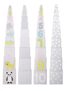 Piramida - wieża marki Jabadabado składa się z 10 klocków wykonanych z najwyższej jakości grubego kartonu. Doskonale nadaje się już dla rocznego dziecka, któremu zarówno budowa wieży, jak i jej przewracanie sprawi dużo radości! Zabawka wspiera rozwój umiejętności motorycznych i koordynacji u dziecka. Klocki można układać jeden na drugim, budując z nich wieżę, lub własne konstrukcje - klocki wieży można też wkładać jeden w drugi, ćwicząc rączki i koordynację ręka- oko. Na każdej ściance klocka znajduje się inny piękny obrazek, odpowiadający ilościowo jego cyfrze. Dzięki wesołym obrazkom, i cyfrom - nauka liczenia do 10 - staje się wspaniała zabawą.