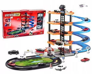 od 3 lat Waga z opakowaniem: 1,53 kg Materiał: Plastik Certyfikaty: EN 71, CE Pięciopoziomowy parking z torem wyścigowym – wspaniała zabawa! Parking pięciopoziomowy to wspaniała zabawa dla małego miłośnika motoryzacji, wyścigów i szybkich samochodów! Bogaty zestaw został wyposażony w 4 super autka wyścigowe oraz helikopter! Komplet dostarczy dziecku frajdy na długie godziny! Na pudełku znajduje się nadruk imitujący trawę z jeziorkiem - można ją wyciąć i umieścić w torze wyścigowym - przez co tor wygląda jak prawdziwy. Ciekawa i udana zabawa czteropiętrowym parkingiem! Każda zabawa jest tym ciekawsza,.