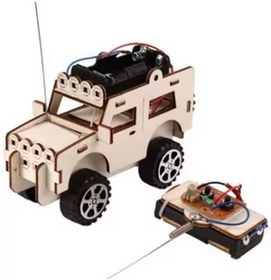 W trakcie procesu budowy dziecko może dowiedzieć się o rozwiązaniu problemów powstających w czasie budowy, dbałości o szczegóły, poprawić logiczne myślenie i rozwinąć zręczność manualną Zestaw idealny dla dzieci 8+. Zawiera wszystkie podzespoły i narzędzia do złożenia modelu. ✅Skład zestawu: Drewniane części karoserii Drewniane części pilota Pilot płytka sterująca polutowana Antenki: 2szt. Kółka: 5szt. Silniczek do napędzania kół Niezbędne przewody Koszyk na baterie 2xAA (duży paluszek).