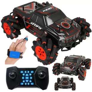 prędkość maksymalna do aż 20 km/h wygodne sterowanie: klasycznie i grawitacyjnie GESTEM sterowanie klasyczne pilotem RC sterowanie grawitacyjne opaską na rękę i palec czas zabawy: do 20 min kontrola jazdy: do 40 metrów swobodnie jeździ we wszystkich kierunkach wykonuje obrót 360° oraz drift funkcja DEMO niezależny napęd na 4 koła terenowe koła z obrotowymi rolkami do driftu efekty dźwiękowe: