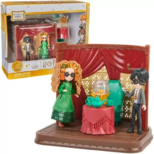Harry Potter Magical Minis zestaw Zajęcia z wróżbiarstwa figurki, akcesoria Została stworzona przez cenioną markę Spin Master. Inspiracją do powstania jest seria niezwykle popularnych na całym świecie książek i filmów "Harry Potter". Seria ta opowiada o niezwykłych przygodach Harry'ego i jego przyjaciół w magicznym świecie czarodziejów. Zestaw Zajęć wróżbiarstwa, składa się z fragmentu sali lekcyjnej. W zajęciach biorą udział Harry Potter oraz profesorka Trelawney.