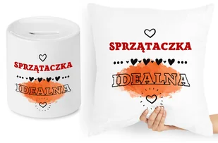 DLA SPRZĄTACZKI ZESTAW PODUSZKA + SKARBONKA z Nadrukiem ze Zdjęciem
