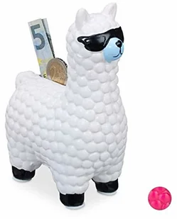 Relaxdays Lama skarbonka, z okularami przeciwsłonecznymi, pomysł na prezent i dekorację, skarbonka z alpaki z ceramiki, wys. x szer. 15,5 x 11 x 6 cm, biała