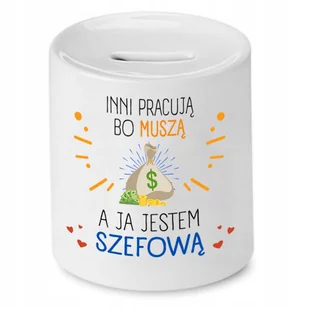 SKARBONKA DLA SZEFA SZEFOWA INNI PRACUJĄ BO MUSZĄ z Nadrukiem ze Zdjęciem ⭐ Zacznij oszczędzać z radością! Skarbonka, która otwiera drzwi do marzeń. ✅ Szukas...