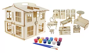 Domek dla lalek z mebelkami do składania i malowania+ farbki