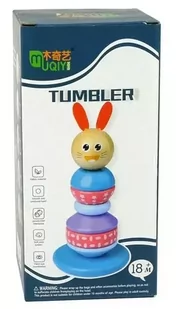 Kolorowy zestaw klocków posiada 6 sztuk zaokrąglonych krążków w różnych rozmiarach i wzorach. Na samym szczycie znajduje się główka słodkiej żabki. W podstawie umieszczony jest bolec do nakładania elementów. Ma ona kształt półokręgu, przez co przy każdym dotknięciu balansuje, co utrudnia nałożenie klocka na bolec. Maluch będzie mógł układać wieżę w różnych konfiguracjach, rozwijając wyobraźnie. Chwytając klocki, wspomoże rozwój koordynacji ręka- oko i precyzji. Kolory i wzorki pobudzą zmysł wzroku Twojego dziecka.