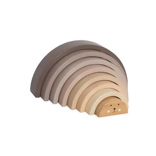 Piramida tęcza w uroczych naturalnych kolorach ziemi. Idealna zabawka drewniana pobudzająca kreatywność zarówno dla najmłodszych fanów konstruowania, jak i trochę starszych. Skłąda się z ośmiu krążków w różnych odcieniach kolorystycznych i różnej wielkości.