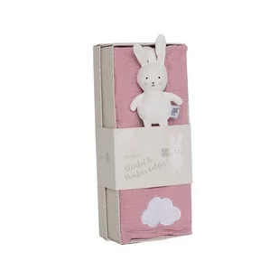 Uroczy, ekskluzywny zestaw upominkowy skłądający się kocyka, otulacza muślinowego oraz ślicznej zawieszki, przytulanki do smoczka w formie sympatycznego królika. Idealny zestaw na prezent dla noworodka, na chrzest lub baby shower. Kocyk, otulacz wykonany jest z 100% z bawełny organicznej w kolorystyce brudnego różu, wyśmienicie komponuje się z przyjacielem smoczka uroczym białym królikiem. Niezwykle delikatny i przyjemny w dotyku muślinowy kocyk, otulacz skandynawskiej marki Jabadabado - w kolorze szarymu z uroczym motywem białej chmurki. Idealnie dostosowany do potrzeb niemowląt.