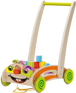 Przedstawiamy wysokiej jakość chodzik o kołach cichobieżnych (nakładka na kołach w formie gumowego paska). Wspaniale sprawdzi się podczas pierwszych prób chodzenia. o Zestaw 36 elementów o 35 kolorowych klocków częściowo zamontowanych o Drewno brzozowe o Wysokość uchwytu: ok. 44.