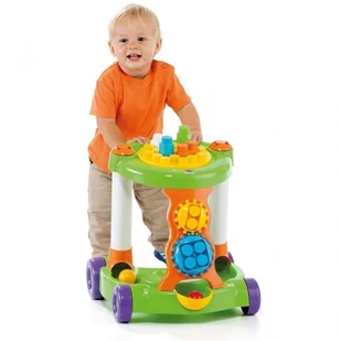 Chodzik na kółkach 3w1 z klockami i piłeczkami. Służy jako oparcie, gdy dziecko zaczyna stawiać pierwsze kroki, dając mu poczucie bezpieczeństwa. Ponadto uczy orientacji w kolorach i kształtach. Piłeczki po wrzuceniu w specjalne otwory turlają się po zjeżdżalniach. Na stoliku w kształcie koła można budować, a pod nim znajdują się klocki.