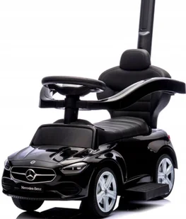 KOLOR: CZARNY Sportowy dziecięcy jeździk, Pchacz - Model MERCEDES AMG c63 MUZYKA + KLAKSON Licencja MERCEDES Pchacz po ściągnięciu rączki, podnóżka oraz barierek zabezpieczających staje się jeździkiem. Uwaga! Barierki nie blokują kierownicę. Kierownica jest skrętna zarówno dla wersji pchacz jak i jeździk!