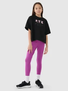 Legginsy dzianinowe dziewczęce idealnie sprawdzą się jako element zarówno casualowych, jak i sportowych stylizacji na co dzień. Legginsy na co dzień dziewczęce posiadają dopasowany krój slim, który przylega do ciała. Splot single jersey z jednostronną gładką powierzchnią sprawia, że jest ona elastyczna i komfortowa w noszeniu. Posiadają średni stan oraz nogawki o pełnej długości sięgające za kostkę. Legginsy dzianinowe 4F dziewczęce są wykonane w 95% z bawełny, dzięki czemu materiał jest miękki, trwały i przyjemny w dotyku.