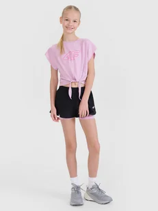 Spodenki treningowe 2w1 dziewczęce - niezawodne wsparcie i komfort na każdym etapie treningu Głównym celem odzieży z linii treningowej jest zapewnienie wygody i wsparcia podczas każdego rodzaju treningu o różnym stopniu zaawansowania i intensywności. Dzięki szybkoschnącym, elastycznym materiałom i wygodnemu dopasowaniu spodenki zapewnią pełną swobodę ruchów, pozwalając na maksymalne skupienie i komfort podczas ćwiczeń. Posiadają krój regular, który wygodnie dopasowuje się do sylwetki. Splot z obu stron dzianiny interlock jest taki sam. Materiał jest wytrzymały, ale jednocześnie miękki, dobrze się układa i chłonie wilgoć.