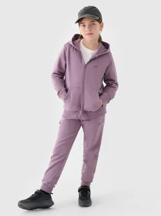 Spodnie dresowe dziewczęce idealnie sprawdzą się jako element zarówno casualowych, jak i sportowych stylizacji na co dzień. Posiadają krój regular, który wygodnie dopasowuje się do sylwetki oraz zwężane nogawki zakończone elastycznym ściągaczem. Splot single jersey z jednostronną gładką powierzchnią sprawia, że są one elastyczne i komfortowe w noszeniu. Dresy 4F dla dziewczyny wykonane z dzianiny o średniej gramaturze 260 gsm, która sprawia, że są one miękkie oraz bardziej przewiewne. Dziecięce spodnie dresowe są wykonane w 78% z bawełny, dzięki czemu są miękkie, trwałe i przyjemne w dotyku.