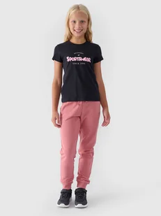 Dresy 4F dla dziewczyny są wykonane w 80% z bawełny, dzięki czemu są miękkie, trwałe i przyjemne w dotyku. Dodatek poliestru (20%) sprawia, że materiał utrzymuje fason i jest odporny na zużycie nawet przez wiele sezonów. Spodnie nie posiadają podszycia, dzięki czemu są lżejsze i odpowiednie na cieplejsze dni. Po bokach znajdują się 2 kieszenie otwarte. Elastyczny pas z zewnętrzną regulacją na troki.