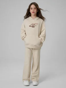 4F Spodnie dresowe z szerokimi nogawkami dziewczęce - beżowe 158 (12-13 lat)