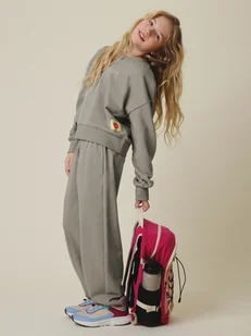 Bawełniana dzianina zapewnia lekki komfort i dobrze sprawdza się w codziennym użytkowaniu – w szkole, w domu i podczas aktywnego czasu po zajęciach. Materiał jest przyjemny w dotyku i pozwala zachować wygodę przez cały dzień. Luźny krój nie dopasowuje się do sylwetki, dzięki czemu spodnie dają pełną swobodę ruchu podczas zabawy i spacerów. Regulowany pas z zewnętrznym sznurkiem umożliwia łatwe dopasowanie obwodu do potrzeb dziecka, a średni stan pomaga utrzymać spodnie stabilnie na miejscu bez uczucia ucisku. Kieszenie boczne pozwalają mieć drobiazgi zawsze pod ręką, a tylna kieszeń zapewnia dodatkowe miejsce na małe przedmioty.