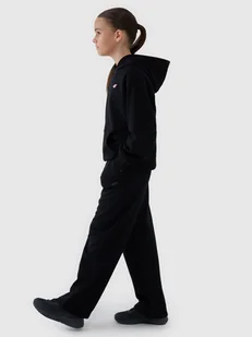 Spodnie dresowe dziewczęce idealnie sprawdzą się jako element zarówno casualowych, jak i sportowych stylizacji na co dzień. Posiadają oversizowy krój, który luźno układa się na sylwetce i zapewnia swobodę oraz szerokie nogawki, które zapewniają pełną swobodę ruchów. Dzianina dresowa french terry z jednej strony jest gładka, natomiast z drugiej posiada widoczny splot w postaci pętelki. Dresy młodzieżowe wykonane z dzianiny o średniej gramaturze 300 gsm, która sprawia, że są one miękkie oraz bardziej przewiewne. Dresy 4F dla dziewczyny są wykonane w 60% z bawełny, dzięki czemu są miękkie, trwałe i przyjemne w dotyku.