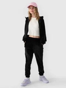 Spodnie dresowe welurowe dziewczęce idealnie sprawdzą się jako element zarówno casualowych, jak i sportowych stylizacji na co dzień. Posiadają krój regular, który wygodnie dopasowuje się do sylwetki oraz zwężane nogawki zakończone elastyczną gumką. Splot single jersey z jednostronną gładką powierzchnią sprawia, że są one elastyczne i komfortowe w noszeniu. Dresy młodzieżowe wykonane z dzianiny o średniej gramaturze 290 gsm, która sprawia, że są one miękkie oraz bardziej przewiewne. Dziecięce spodnie dresowe z weluru są wykonane z weluru o delikatnym połysku.