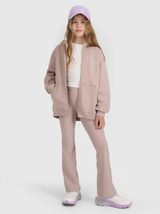 Jest rozciągliwa i miękka w dotyku. Dresy 4F dla dziewczyny wykonane z dzianiny o średniej gramaturze 260 gsm, która sprawia, że są one miękkie oraz bardziej przewiewne. Dziewczęce spodnie dresowe z szeroką nogawką są wykonane z materiału syntetycznego, który zapewnia trwałość i jest łatwy w pielęgnacji. Dodatek elastanu (22%) sprawia, że są rozciągliwe i wygodnie układają się na sylwetce. Spodnie nie posiadają podszycia, dzięki czemu są lżejsze i odpowiednie na cieplejsze dni.