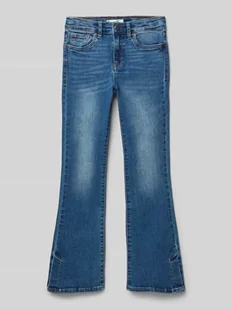 Jeansy dziecięce Levi’s® Kids;Mieszanka bawełny z dodatkiem streczu;Rozkloszowany krój;5 kieszeni;Naszywka z logo;Detal z logo;Szerokość w pasie w rozmiarze 140: 32 cm;Długość wewnętrzna nogawki w rozmiarze 140: 65 cm