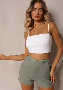 Zielone Szorty o Klasycznym Kroju z Paskiem w Talii Rivanette