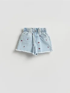 Reserved - Jeansowe szorty paperbag z haftem - niebieski
