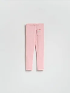Reserved - Prążkowane legginsy z naszywką - pastelowy róż