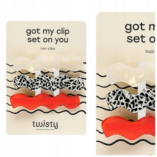 Zestaw falowanych spinek do włosów - czerwona, marmurkowa, perłowa Twisty 3 szt.