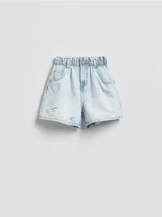 Jeansowe szorty o kroju paperbag, wykonane z bawełny.