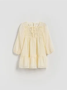 Reserved - Sukienka z kwadratowym dekoltem - kremowy