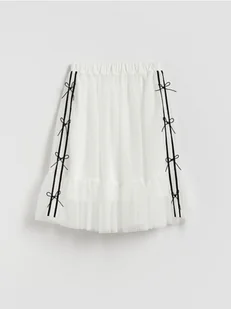 Reserved - Tiulowa spódnica z kokardkami - złamana biel