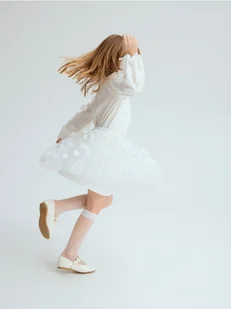 Reserved - Tiulowa spódnica z kwiatowym motywem - biały
