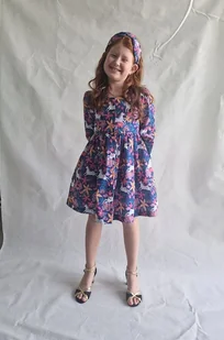 Urocza sukienka Rosemary w print jednorożce i kwiatki. Sukienka uszyta jest z tkaniny popeliny bawełnianej 100%, w kolorze niebieskim oraz wielokolorowe wzory. Rosemary to sukienka z długim rę ...