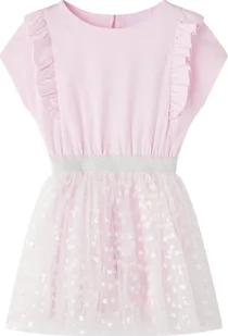 vidaXL Sukienka dziecięca z falbankami, błyszczące serduszka, jasny róż, 104