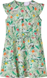 vidaXL Sukienka dziecięca z rękawkami, jednorożce i rośliny, jasne khaki, 116
