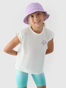 Top 4F dziewczęcy idealnie sprawdzi się jako element zarówno casualowych, jak i sportowych stylizacji na co dzień. Posiada krój regular, który wygodnie dopasowuje się do sylwetki oraz standardową długość sięgającą do linii bioder. Splot single jersey z jednostronną gładką powierzchnią sprawia, że koszulka jest elastyczna i komfortowa w noszeniu. Koszulka z nadrukiem dziewczęca dzięki gramaturze 160 gsm jest miękka, lekka i przewiewna. Doskonale nadaje się do noszenia zwłaszcza w okresie letnim bądź jako podkoszulek pod bluzę czy koszulę.