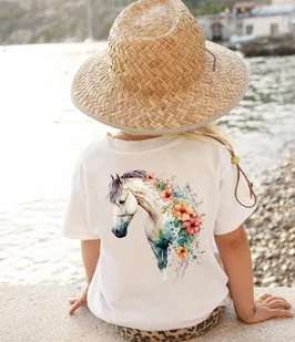 Koszulka z koniem z tyłu Koszulka dziecięca dla dziewczynki jak i chłopców. Koszulka unisex Dostępna w każdym rozmiarze: 92 - 98 - 104 - 116 - 128 - 140 - 152 Materiał: bawełna Dostępna w różnych rozmiarach, nasza koszulka jest idealnym ubraniem zarówno dla niemowlaków, przedszkolaków, jak i dzieci w wieku wczesnoszkolnym. Krój z krótkim rękawem i okrągłym dekoltem zapewnia swobodę ruchów i łatwość zakładania.