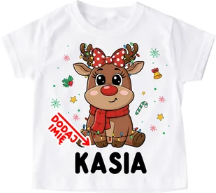 Koszulka dla dziewczynki klasowe MIKOŁAJKI z reniferem i imieniem Przygotuj swojego małego bohatera na magiczny czas świąt z uroczą świąteczną. koszulką To idealny wybór dla dzieci, które kochają świąteczny klimat, ciepłe kakao, pierniczki i rodzinne chwile przy choince. Koszulka nie tylko zachwyca zabawnym, świątecznym nadrukiem, ale też gwarantuje maksymalny komfort noszenia – przez cały dzień zabawy, kolędowania i pakowania prezentów. Materiał i wykonanie Koszulka została wykonana w 100% bawełny, która jest miękka, przewiewna i przyjemna w dotyku. Zapewnia komfort nawet najbardziej ruchliwym maluchom.