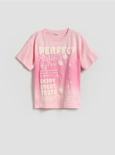 Reserved - Luźny t-shirt z nadrukiem - pastelowy róż
