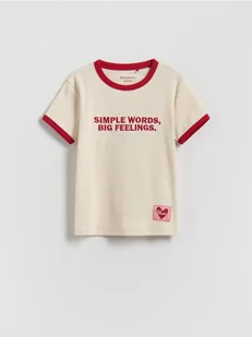 Reserved - T-shirt z haftowanym napisem - beżowy