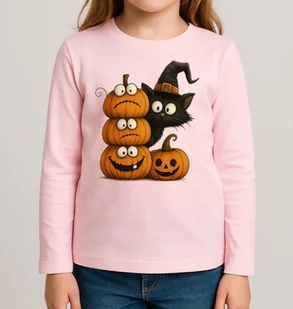 Różowa Dziecięca koszulka z długim rękawkiem na Dzień Dynia - KOTDYNIA73