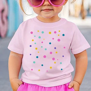 Różowa koszulka w kropki dla dziewczynki na dzień kropki -wzór kropkikolorowe4 Koszulka w kropki. Koszulka dziecięca Materiał: bawełna Dostępna w różnych rozmiarach, nasza koszulka jest idealnym ubraniem zarówno dla niemowlaków, przedszkolaków, jak i dzieci w wieku wczesnoszkolnym. Krój z krótkim rękawem i okrągłym dekoltem zapewnia swobodę ruchów i łatwość zakładania. Podsumowując, nasza koszulka dla dziecka z nadrukiem to idealny sposób, aby wyrazić dziecięcą ciekawość i radość z odkrywania świata.