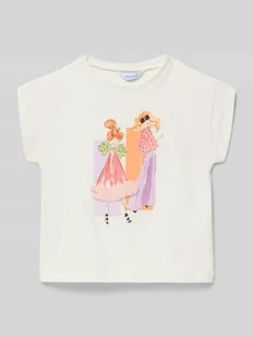T-shirt dziecięcy Mayoral;Mieszanka bawełny i elastanu;Krój regular fit;Nadruk z motywem;Okrągły dekolt;Długość tyłu w rozmiarze 116: 38 cm