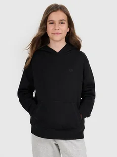 Bluza z kapturem 4F dziewczęca - CECHY: gramatura 280 gsm – zapewnia odpowiednią grubość materiału, idealną na chłodniejsze dni zakres rozmiarów 122–164 – dopasowany do potrzeb dzieci i młodzieży jednostronnie czesane wnętrze – zwiększa komfort termiczny dzięki dodatkowej warstwie ocieplenia krój oversize – luźny fason gwarantujący pełną swobodę ruchów standardowa długość do bioder – uniwersalne dopasowanie do sylwetki 80% bawełny – miękka, trwała i przyjemna w dotyku dzianina 20% poliestru – zwiększa odporność na zużycie i przedłuża trwałość produktu jednolita kolorystyka – łatwa do zestawienia z innymi elementami garderoby dzianina single jersey – gładka i miękka powierzchnia materiału zapewnia wysoki komfort noszenia kaptur zintegrowany z dekoltem – dodatkowa ochrona przed wiatrem i chłodem mankiety i dół wykończone ściągaczem – lepsze dopasowanie i ochrona przed utratą ciepła kieszeń kangurka – praktyczne miejsce na drobiazgi i ogrzanie dłoni obniżona linia ramion – nadaje sylwetce swobodny, sportowy charakter Bluza dresowa dziewczęca nierozpinana z kapturem idealnie sprawdzi się jako element zarówno casualowych, jak i sportowych stylizacji na co dzień. Posiada oversizowy krój, który luźno układa się na sylwetce i zapewnia swobodę. Splot single jersey z jednostronną gładką powierzchnią sprawia, że jest ona elastyczna i komfortowa w noszeniu. Bluza dresowa dziewczęca z kapturem posiada średnią gramaturę 280 gsm.
