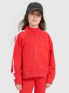 Bluza bez kaptura 4F dziewczęca - CECHY: gramatura 300 gsm – średniej grubości materiał zapewniający równowagę między komfortem a trwałością zakres rozmiarów: 122-164 – szeroka gama rozmiarów dopasowujących się do różnych sylwetek wnętrze bez podszycia – lekka konstrukcja sprzyjająca wygodzie noszenia krój oversize – luźno układa się na sylwetce i zapewnia swobodę ruchów standardowy fason sięgający do bioder – uniwersalna długość odpowiednia do codziennego użytku wykonana w 80% z bawełny – miękki, trwały materiał, przyjemny w dotyku dodatek 20% poliestru – zwiększa odporność na zużycie i poprawia trwałość bloki kolorów – nowoczesny, dynamiczny wygląd podkreślający styl produktu dzianina interlock – miękka, gładka i elastyczna struktura zwiększająca komfort użytkowania stójka pod szyją – dodatkowa ochrona przed chłodem i stylowe wykończenie mankiety ze ściągaczem – lepsze dopasowanie i ochrona przed przewiewem 2 otwarte kieszenie boczne – funkcjonalne i wygodne do przechowywania drobiazgów zapinana na jednokierunkowy zamek – łatwe zakładanie i dopasowanie raglanowe rękawy – nie krępują ruchów, zwiększając komfort dół ze ściągaczem – stabilizuje fason i poprawia dopasowanie do sylwetki Bluza dresowa dziewczęca rozpinana bez kaptura idealnie sprawdzi się jako element zarówno casualowych, jak i sportowych stylizacji na co dzień. Posiada oversizowy krój, który luźno układa się na sylwetce i zapewnia swobodę. Dzianina o splocie interlock jest miękka oraz posiada gładką w dotyku powierzchnię.