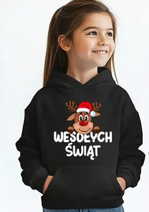 Bluza świąteczna dla dziecka Bluza dziecięca dla dziecka. Rozmiar dziecięcy uniwersalny zarówno dla chłopca jak i dziewczynki. Z kapturem i kieszenią kangurkową Bardzo miła w dotyku. Sznurki w kolorze bluzy. Naszyta kieszeń-kangurka.